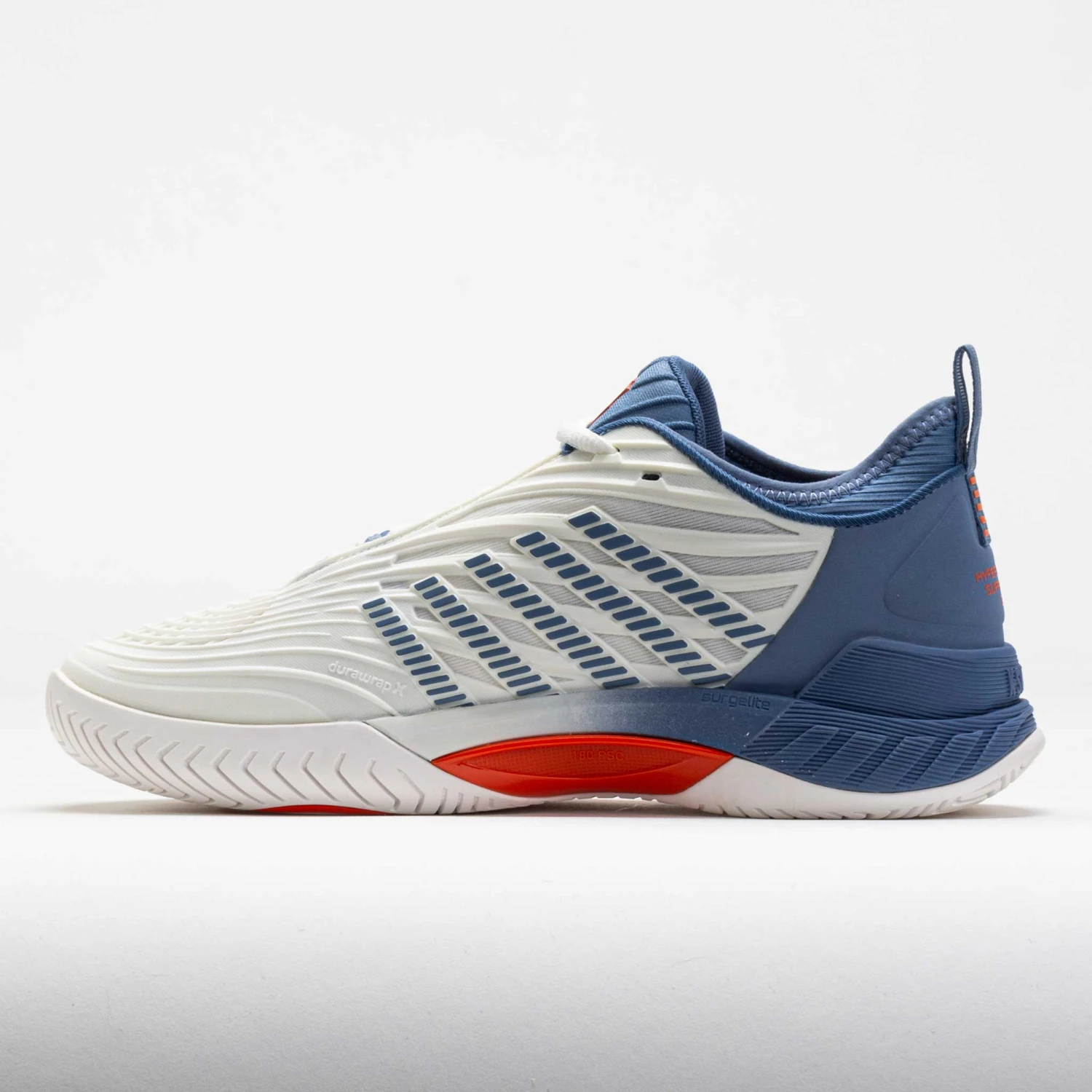 Reach your potential in the K-Swiss Hypercourt Supreme 2! This tennis shoe keeps you comfortable with a secure fit and durable support. Stay protected while sprinting around the court in the Durawrap X upper. The dual-density midsole features a Surgelite outer foam and a Shock Spring inner foam for quick reactions. Enjoy traction and durability on any surface under the DragGuard 7.0 rubber outsole. Soft, light and responsive, the K-Swiss Hypercourt Supreme 2 brings you to the ball faster!