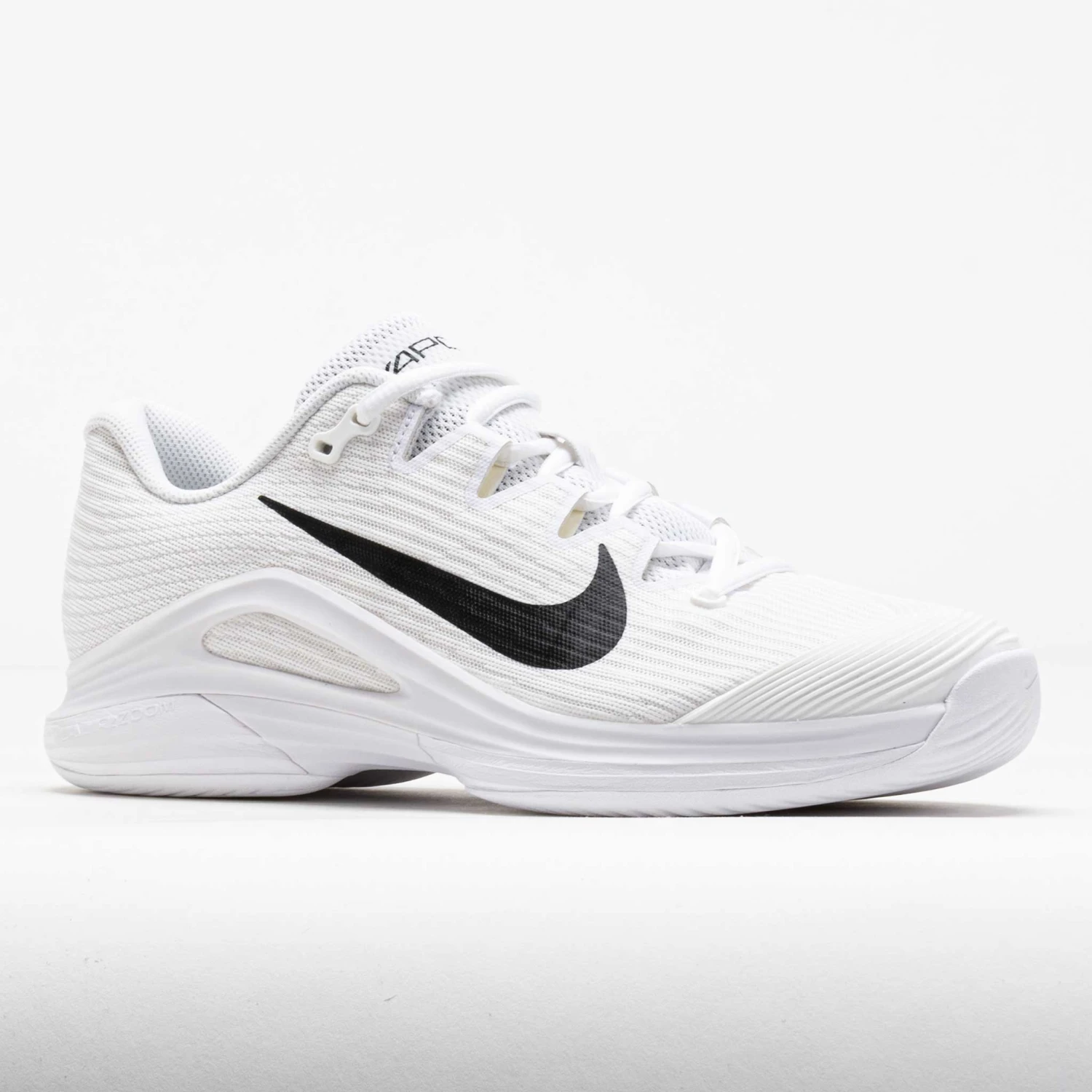 Vanish your opponents in the Nike Vapor 12 Premium! Featuring a redesigned upper and tread pattern, this speedy tennis shoe brings you to the ball faster. Stay light and protected in the breathable mesh upper. The Air Zoom unit in the heel adds a spring to every step, helping you stay on the attack. Stick and cut in any direction under the herringbone outsole. Light, responsive and aggressive, the Nike Vapor 12 Premium lets you use speed to your advantage!