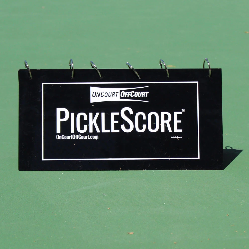Perfect for pickleball tournaments, the Oncourt Offcourt Picklescore lets you know and see the score with ease, even from a distance. Portable and about the size of a notebook, this scorecard works sitting on a table or hanging from a fence. Easy to view and use, the Oncourt Offcourt Picklescore is a game-changer for tournament play!