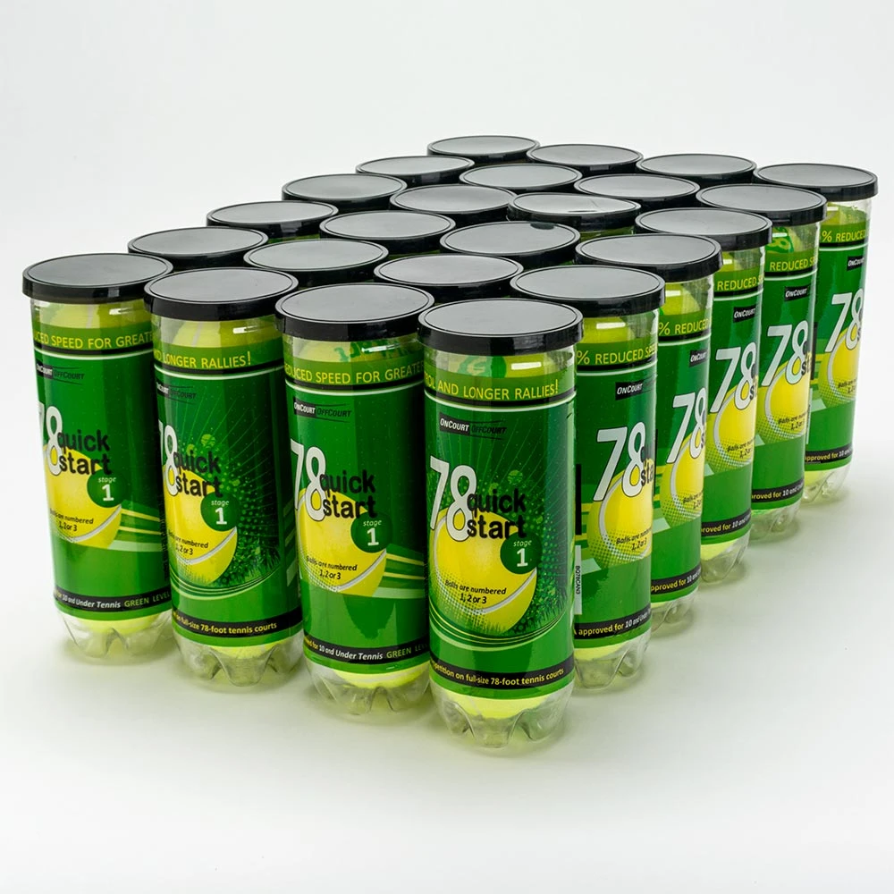 Oncourt Offcourt Quickstart 78 tennis balls allow 25% reduced speed for greater control and longer rallies. These green level tennis balls are perfect for players ages 10 and under. The low-compression pressurized balls help young players develop technique and a love of the sport.