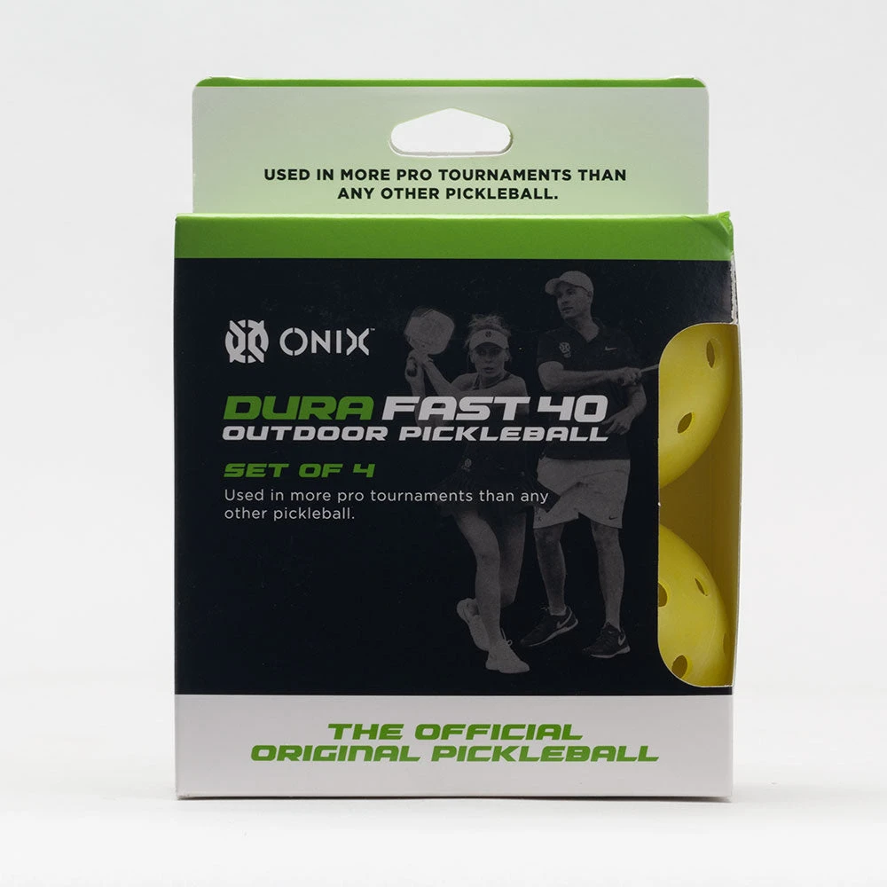 The official ball of the PPA Tour tournaments, APP Tour tournaments and Pickleball Canada Tournament, the Onix Dura Fast 40 Outdoor Pickleballs 4 Pack offers championship-caliber quality for competition. This seamless, one-piece ball is manufactured to exact standards before the hole pattern is applied, giving you consistent flight and durability every time you take the court.