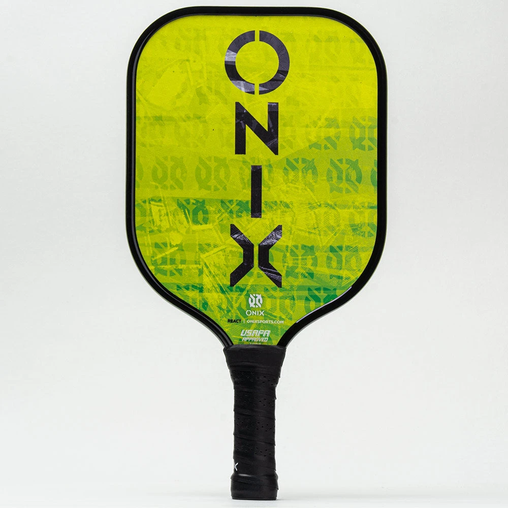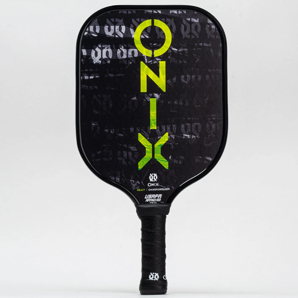 The lightweight Onix™ Graphite React™ paddle blends two cores with a Fusion Core™ technology for premier touch and power. A polypropylene base and a Nomex insert helps improve power at the sweet spot while giving players optimal control.