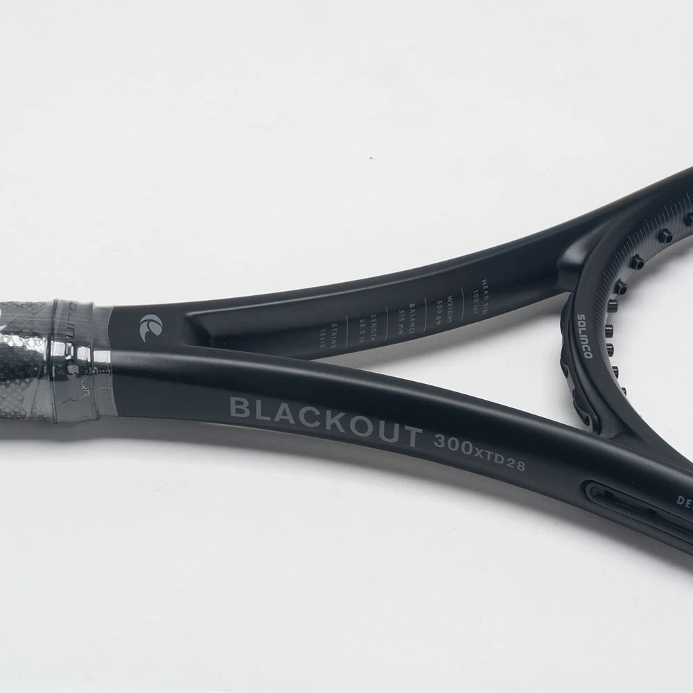 Fast, explosive and powerful, the Solinco Blackout 300 XTD+ is a dangerous weapon for intermediate and advanced players. Featuring an extended 28″ length, this tennis racquet provides extra reach, stability and power. Enjoy a plush feel at contact from the Liquid Crystal technology in the layup, which reduces vibrations and eases arm fatigue. The 40T Carbon Fiber technology at the three and nine o’clock positions increases the sweet spot while improving stability. If you’re an aggressive striker who likes to dictate pace of play, control the court with the Solinco Blackout 300 XTD!